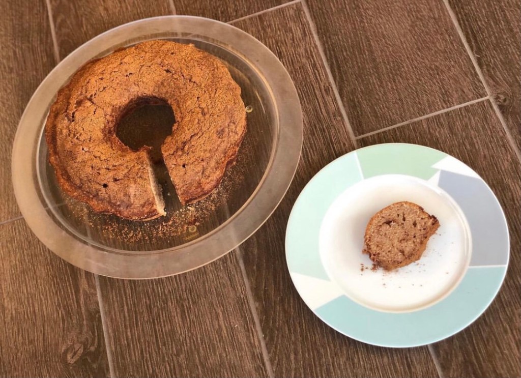Mix the dry ingredients in a big bowl. Mix the egg, milk, vanilla and oil in another bowl. Add the wet ingredients to the flour mixture. Pour half of the batter in the loaf pan. Sprinkle 1/2 of the cinnamon mix. Add the other half of the batter and sprinkle the rest of the cinnamon mix.
